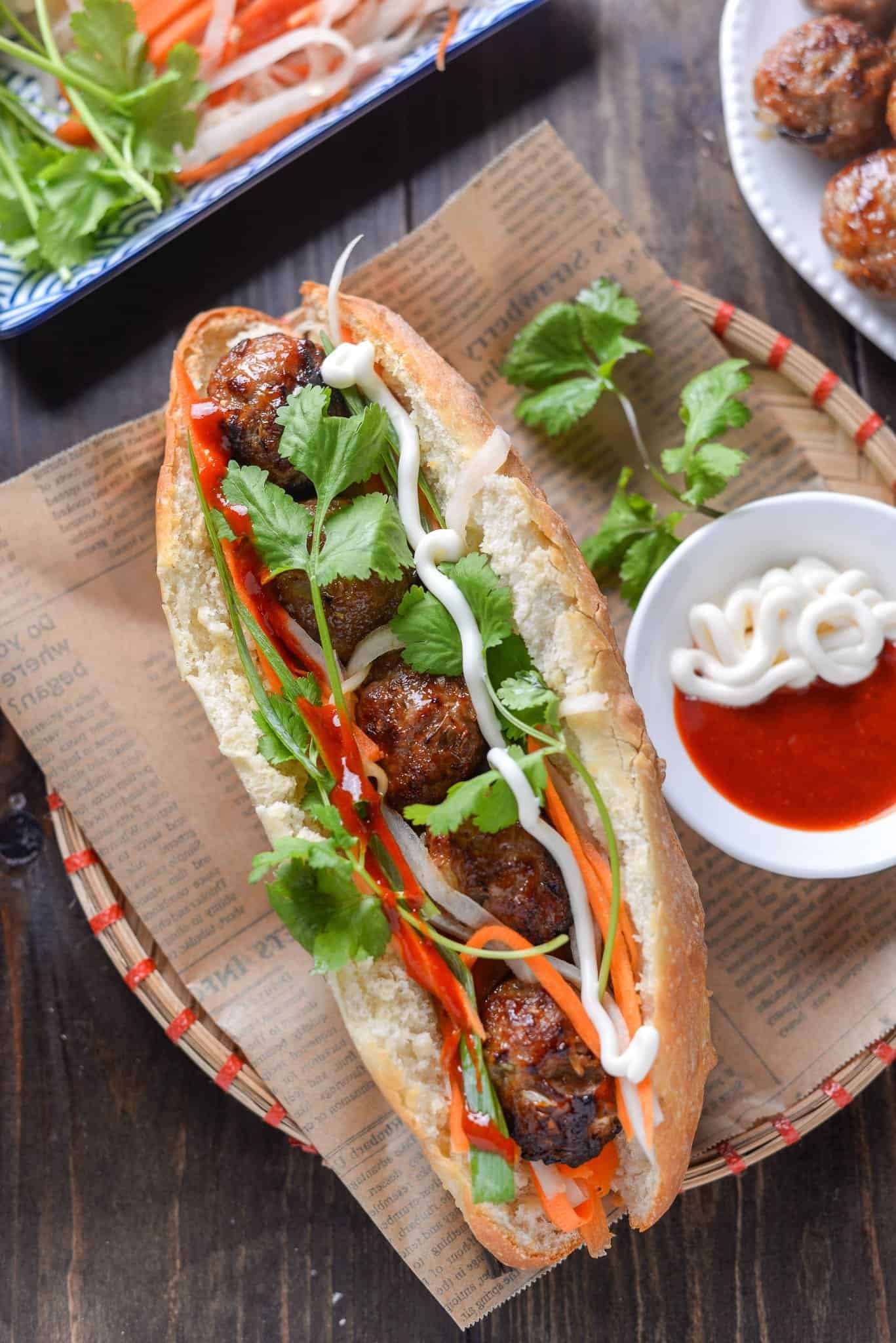 Once all your elements are ready, here’s what you’ll need to build the perfect Grilled Meatball Bánh Mì: