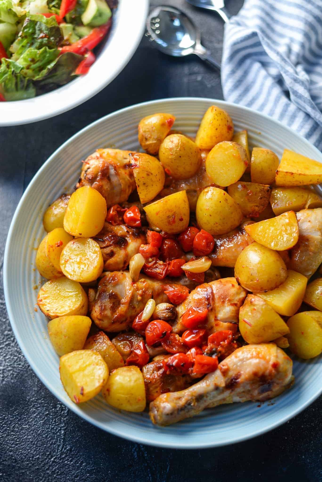 An easy and flavourful dinner with chicken, potatoes and tomatoes